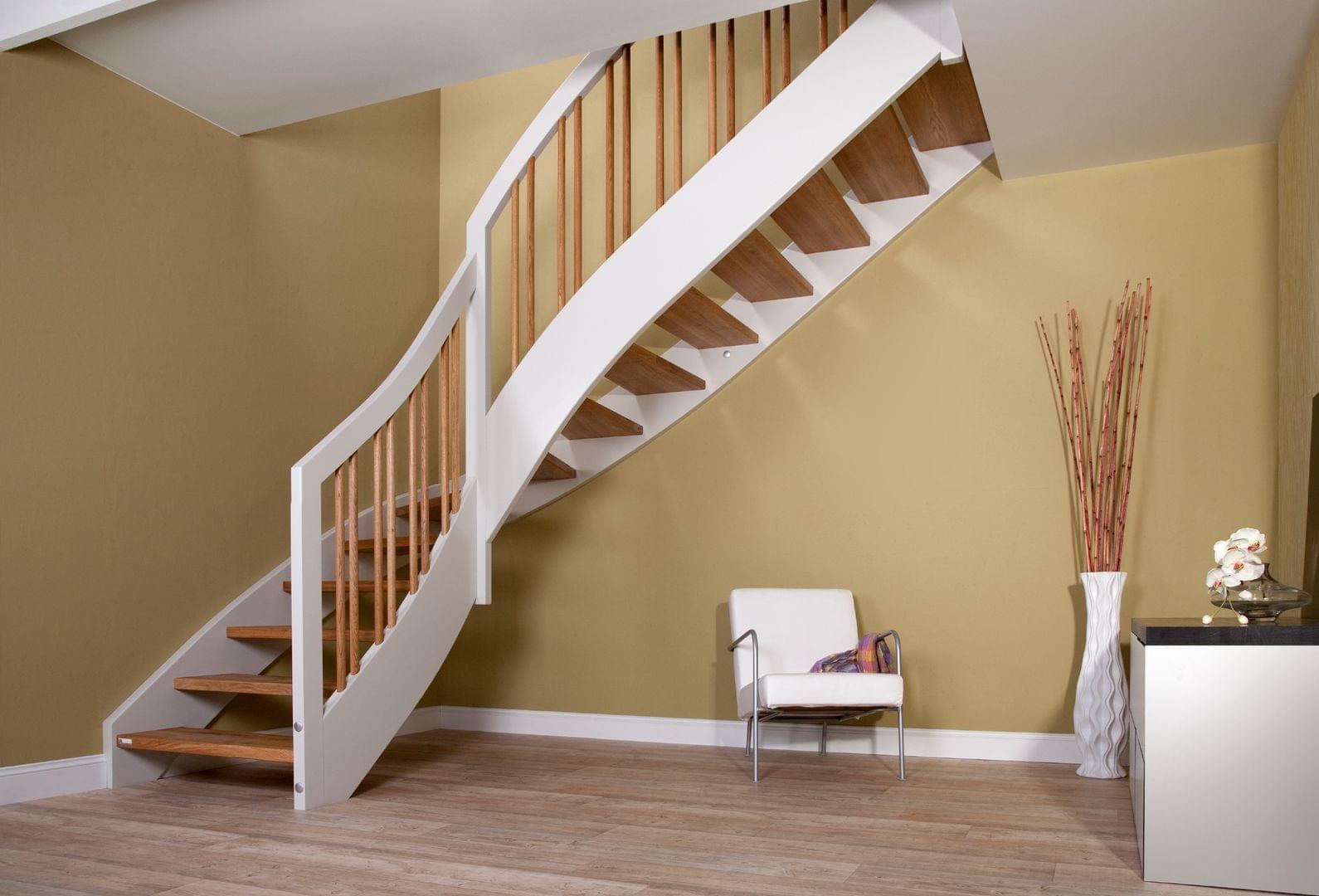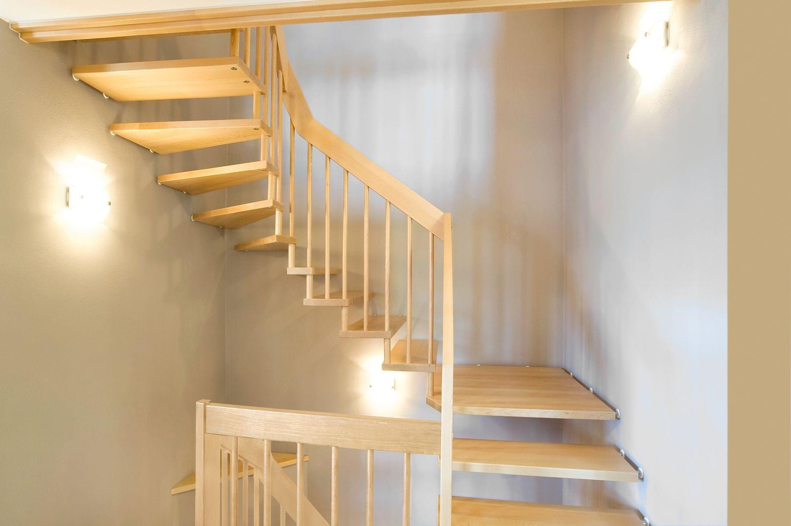 Wangentreppe Massivholz mit Setzstufen gedrechselte Stäbe und Pfosten Treppenmeister 534a