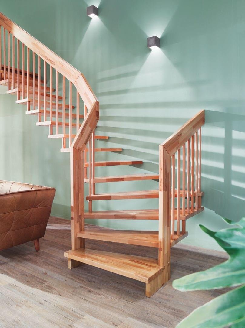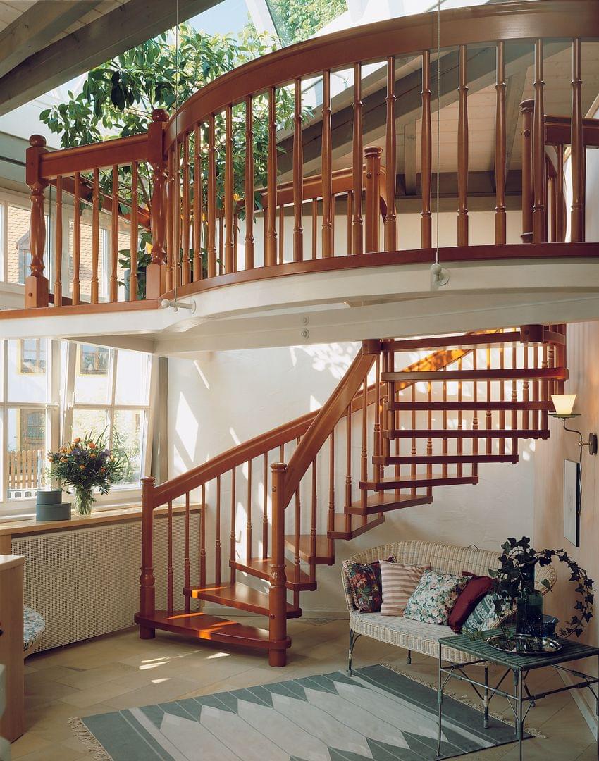 Holztreppe Systemtreppe mit gedrechselten Stäben im Holzgeländer Treppenmeister 501b