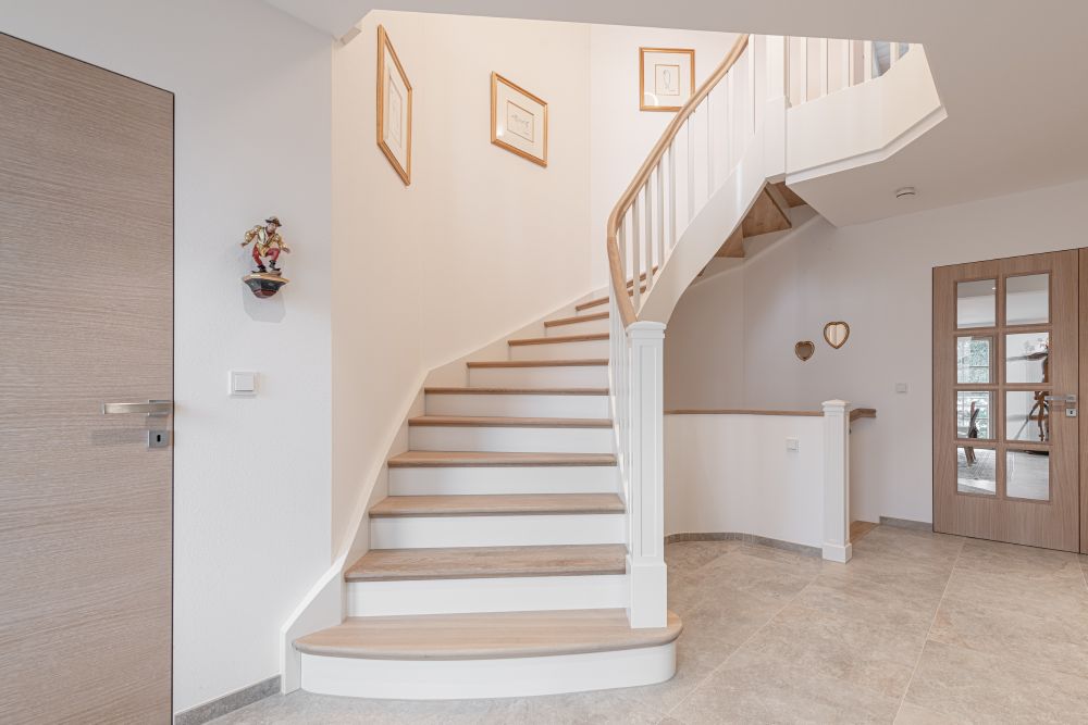 Systemtreppe Massivholz im Landhausstil zweifarbig lackiert Treppenmeister VILLA 586c