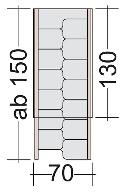 Deckenaussparung mindestens 70 cm breit und 130 cm tief.
